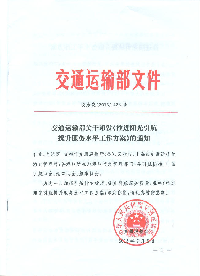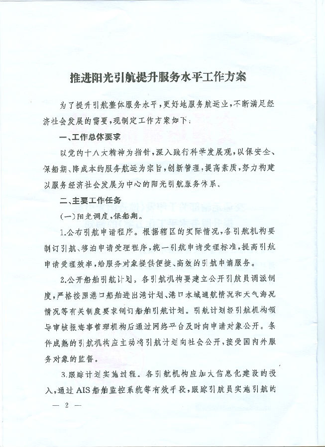 交通运输部关于印发《推进阳光引航提升服务水平工作方案》的通知