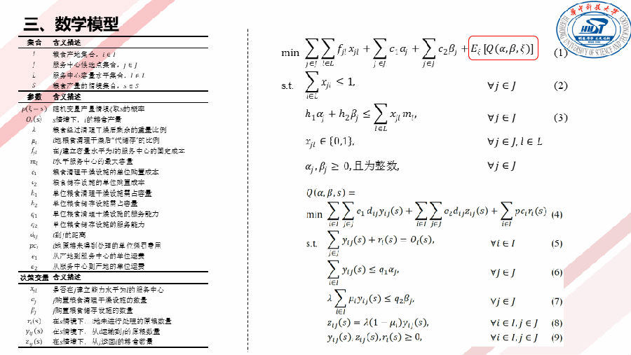 演讲题目:粮食产后服务中心选址问题及Benders分解算法