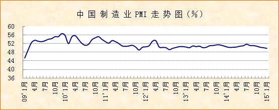 、国家统计局服务业调查中心发布的2015年1月份中国制造业采购经理指数(PMI)为49.8%,较上月下降0.3个百分点,显示当前经济下行压力仍不容忽视。但从近10年来的历史数据来看,受节日因素扰动,1月份PMI指数多有下降,今年降幅不大,仅为同期平均水平。目前生产、新订单指数继续保持在50%以上,从业人员指数基本保持平稳。中小企业稳中有升,显示市场活力增强。多数企业认为,2月份,由于受春节因素影响,经济活动仍会有所波动,但今年迎春度假安排早,企业提前做了休整,3月份以后恢复也有望加快,经济走势将逐渐走向平稳。