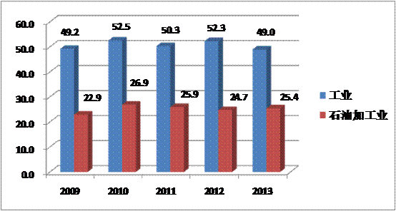 运输成本占比下降。2013年,石油加工业运输成本同比下降6.8%,占物流总成本的比重为48.7%,较2012年下降3.3个百分点。