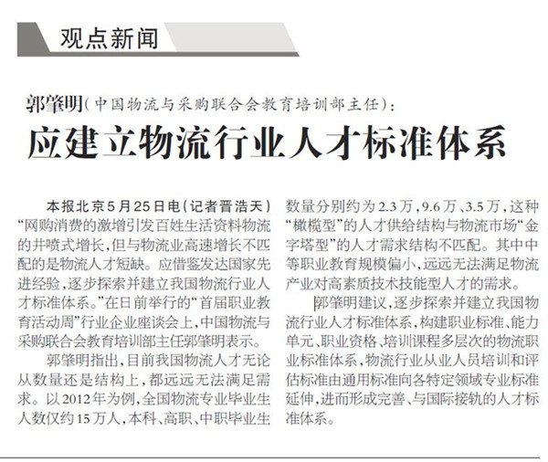 光明日报:应建立物流行业人才标准体系