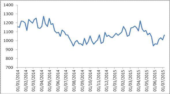图 1 2015年以来各周中国公路物流运价指数