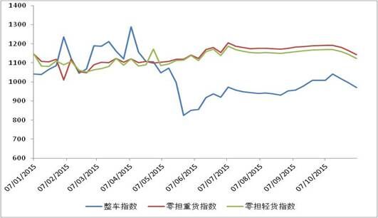 进入11月,公路物流市场需求未见明显好转,公路货运量较前期继续小幅回落,加之燃油价格有所下调,公路物流价格整体震荡走低。从后期走势看,进入中旬随着电商促销等活动临近公路货量有望回暖,未来零担指数有望呈现企稳走势,而整车指数可能仍将延续震荡走势。