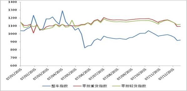 各车型指数环比均小幅回升,其中整车指数环比涨幅高于零担指数,零担重货指数涨幅略低于零担轻货指数。本周,整车指数为921.9点,比上周回升0.5%,比年初回落10.1%;零担轻货指数为1119.0点,比上周回升0.29%,比年初回升1.1%;零担重货指数为1095.8点,比上周回升0.29%,比年初回落1.3%。
