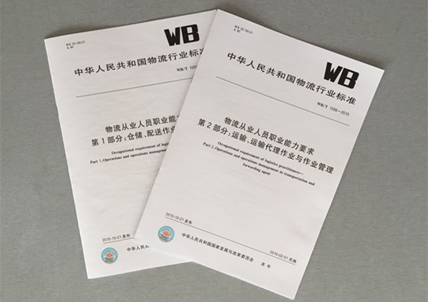 中华人民共和国物流行业标准《物流从业人员职业能力要求第1部分:仓储配送作业与作业管理》(WB/T1055-2015)、《物流从业人员职业能力要求第2部分:运输、运输代理作业与作业管理》(WB/T1056-2015)于2016年2月1日正式实施。
