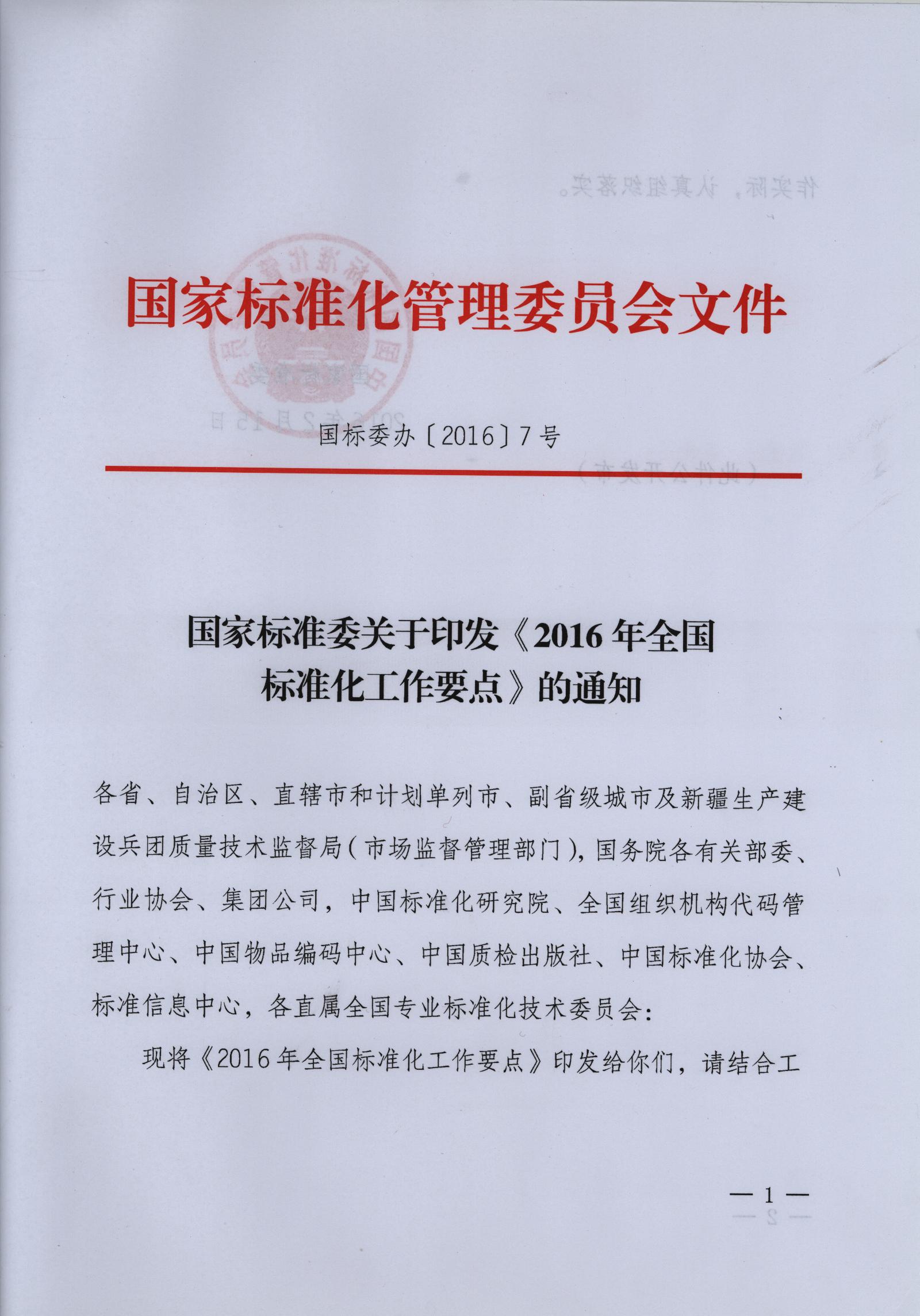 转发:国家标准委关于印发《2016年全国标准化工作要点》的通知