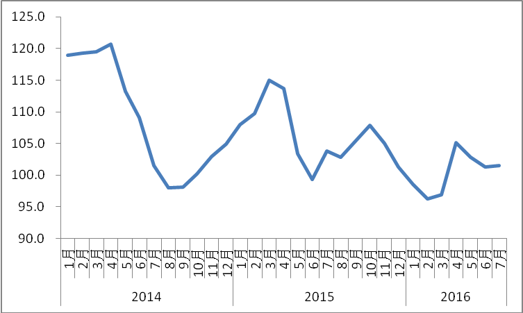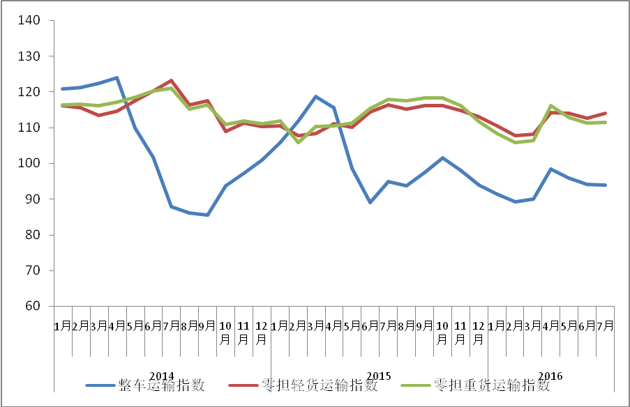 和林安物流集团联合调查的中国公路物流运价指数2016年7月为101.5点,比上月小幅回升0.2%,比年初回升3.0%,但比上年同期下降2.2%。月指数虽总体小幅回升,但从各周情况看,呈现“波动向下”的态势,月内除第二周外其他三周均有所回落。