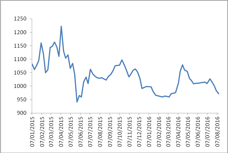 本周(2016年8月8日~8月12日),由雷竞技电竞竞猜网 和林安物流集团联合调查的中国公路物流运价指数971.8点,比上周回落1.3%,连续四周环比回落,比上年同期下降5.8%。