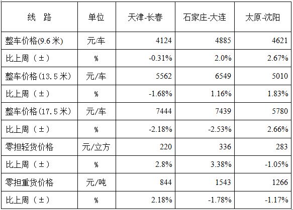 从分地区指数来看,各地区运价指数涨跌不一。其中,京津冀及东北地区运价指数环比回升,比上周回升0.2%左右;东部沿海及西北地区运价指数环比回落,幅度在0.1%-0.2%。