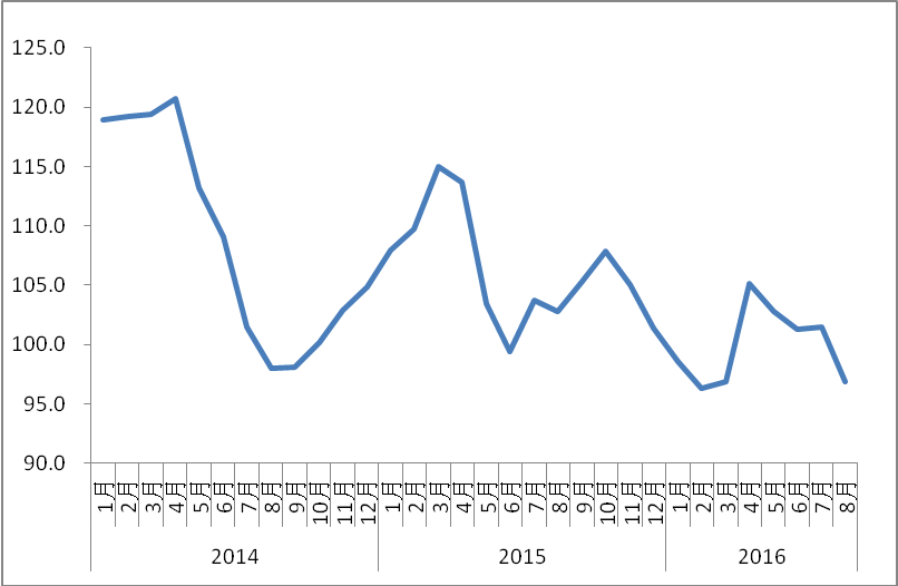 由雷竞技电竞竞猜网 和林安物流集团联合调查的中国公路物流运价指数2016年8月为96.9点,比上月回落4.5%,比上年同期下降5.7%。月指数总体位于年内较低水平,从各周情况看,月内除第五周小幅回升外前四周呈现“连续回落”的走势。