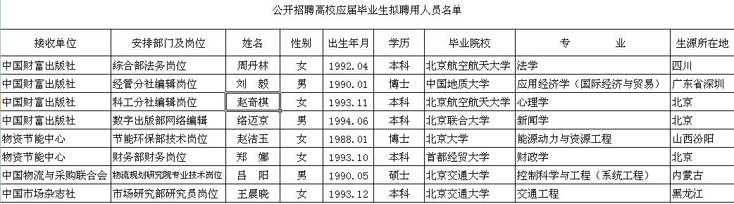 附件:公开招聘高校应届毕业生拟聘用人员名单
