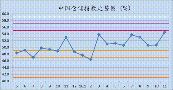 雷竞技电竞竞猜网 与中储发展股份有限公司联合调查的2016年11月中国仓储指数为54.5%,较上月回升3.8个百分点,连续九个月位于扩张区间,并创2015年3月份以来的新高。各分项指数中,业务利润指数及企业员工指数较上月有所下降,其余指数均有不同程度的回升。