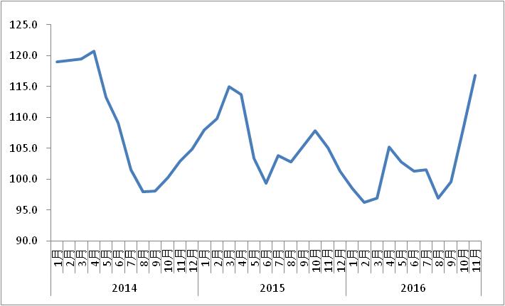 雷竞技电竞竞猜网 发布的2016年11月份中国物流业景气指数为59.3%较上月回升0.1个百分点;中国仓储指数为54.5%,较上月回升3.8个百分点;中国公路物流运价指数为116.8点,比上月回升8%。