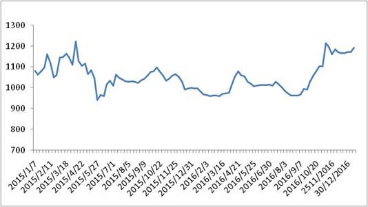 图 1 2016-2017年各周中国公路物流运价指数