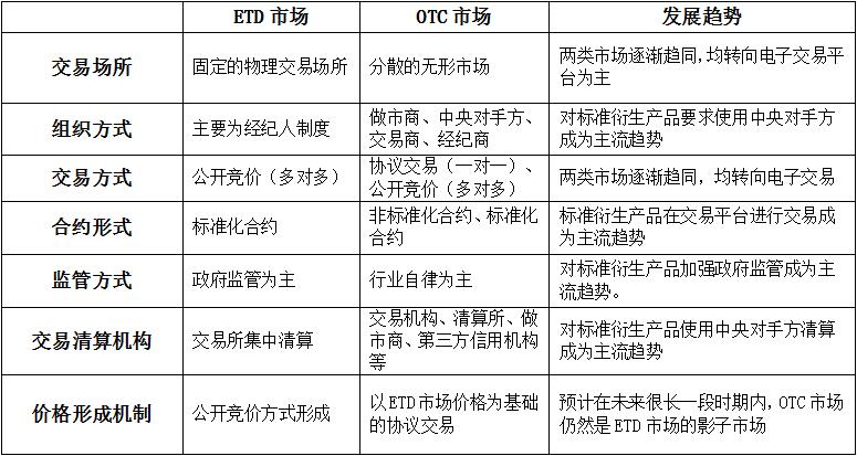 表1 国际ETD市场与OTC市场的主要区别与变化趋势