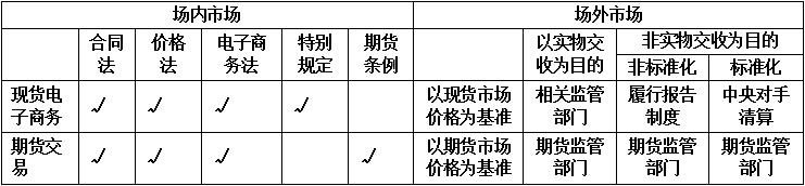 表4 各类商品交易场所应遵循的法规及监管主体