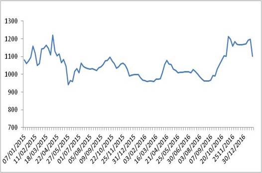 图 1 2016-2017年各周中国公路物流运价指数