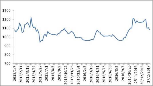 图 1 2016-2017年各周中国公路物流运价指数