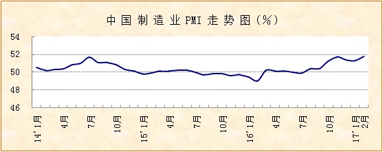 、国家统计局服务业调查中心发布的2017年3月份中国制造业采购经理指数(PMI)为51.8%,较上月回升0.2个百分点,连续两个月上升,处在最近3年来的最高水平。结合前两个月的情况来看,今年一季度PMI指数平均为51.6%,高于去年同期2个百分点以上。主要分项指数均现明显回升,显示市场需求改善,生产活动恢复,企业整体向好,行业普遍回升,一季度经济运行积极变化明显,经济增速呈现回升势头,可望达到6.8%左右,但总的来看仍保持在6.5%-7%的平稳运行区间。