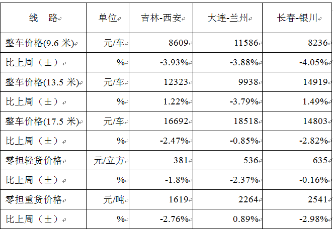 表1 本周部分线路平均价格及环比情况对比