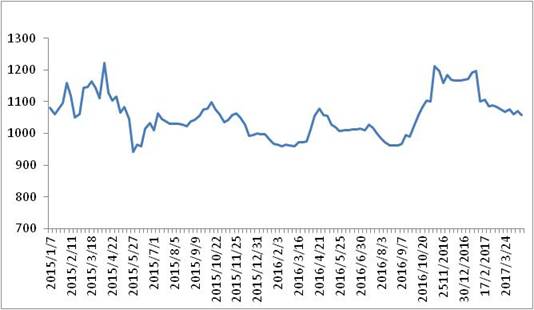 图 1 2015-2017年各周中国公路物流运价指数
