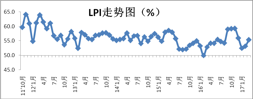 雷竞技电竞竞猜网 发布的2017年4月份中国物流业景气指数为58.2%较上月回升2.8个百分点;中国仓储指数为55.1%,较上月回升0.6个百分点;中国公路物流运价指数为106.3点,比上月回落1.5%。