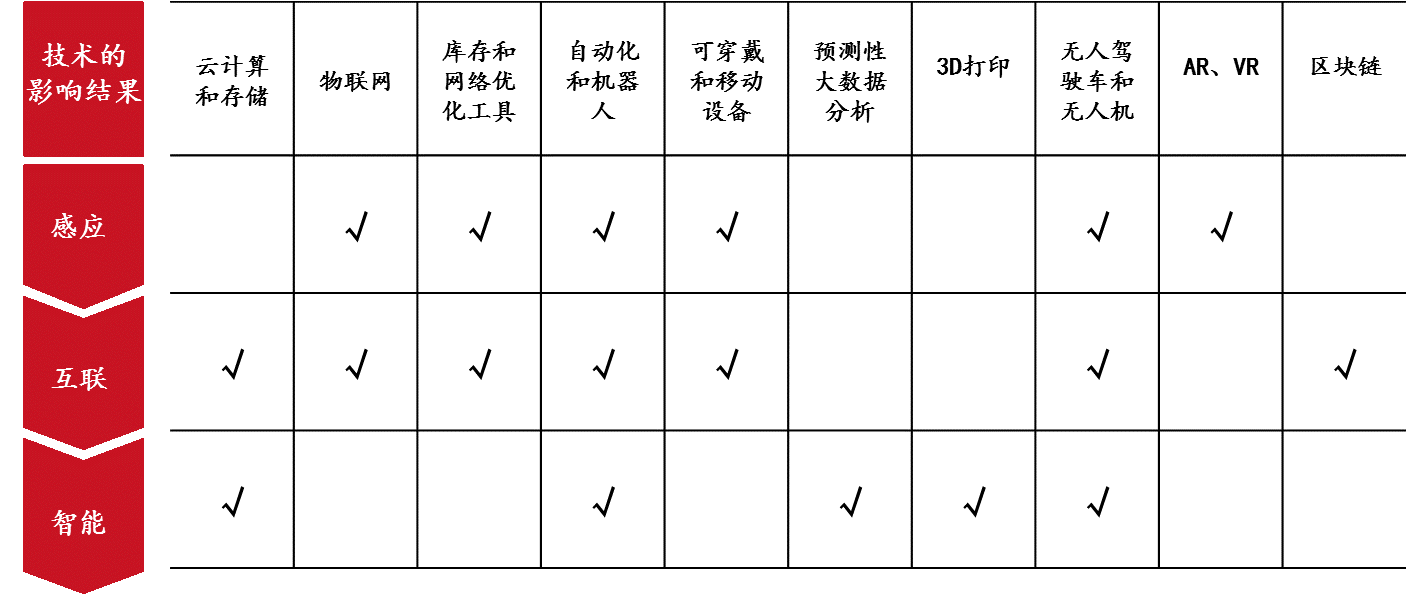 这些新技术驱动物流变化的结果,主要体现在三个方面:一是感应,使物流整个场景数字化;二是互联,使整个供应链内的所有元素相互连接;三是智能,供应链相关的决策将更加自主、智能。