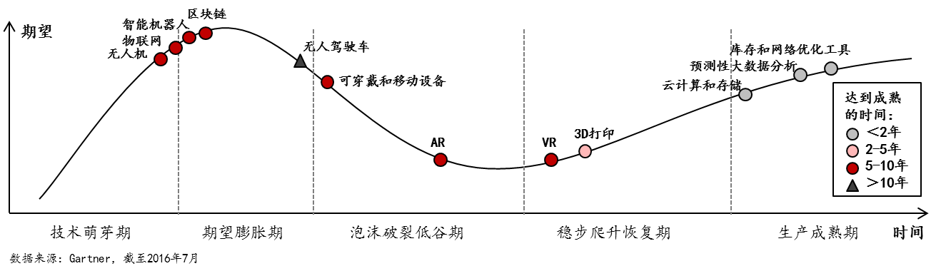 未来5-10年,云计算和存储、预测性大数据分析等绝大多数新技术将进入生产成熟期,预计会广泛应用于仓储、运输、配送等各个物流环节,为推动中国智慧物流的全面实现和迭代提升奠定基础。