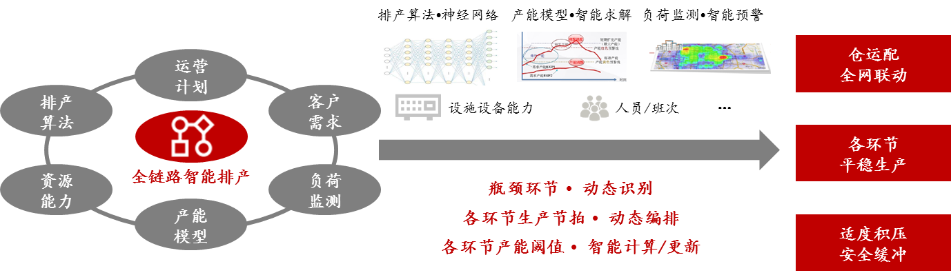主要体现在全链路智能排产和运营规则智能设置两个方面。