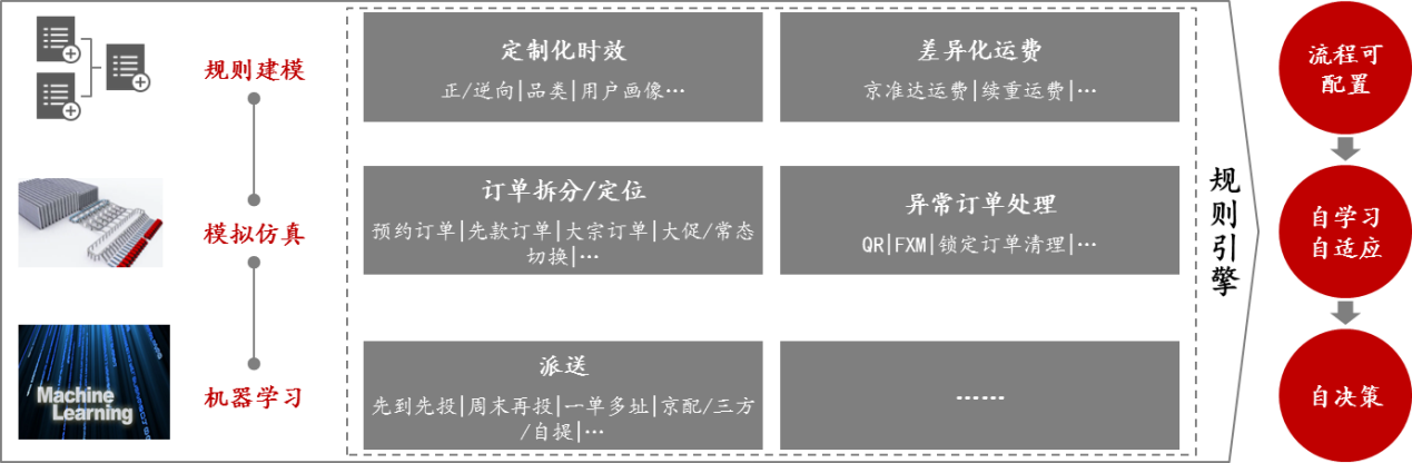 以电商B2C物流运营规则为例:网络购物具有高峰(例如618、双11大促)、常态两种场景,由于订单规模的巨大差距,对应的订单生产方式、交付时效、运费、异常订单处理等的规则差异很大,未来的规则引擎,将能自动感知时间、商品品类等条件,自主为每类订单设置最优的运营规则。