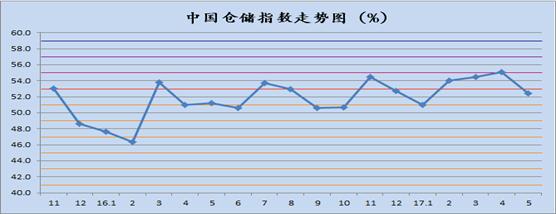平均库存量指数和库存周转次数指数回落。5月份,平均库存量指数为55.1%,回落3.1个百分点。库存周转次数指数为55.7%,回落1.1个百分点。