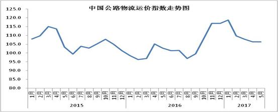 雷竞技电竞竞猜网 发布的2017年5月份中国物流业景气指数为57.7%较上月回落0.5个百分点;中国仓储指数为52.4%,较上月回落2.7个百分点;中国公路物流运价指数为106.33点,比上月回升0.07%;中国电商物流运行指数同比指数为121点,比上月小幅回落0.1点。