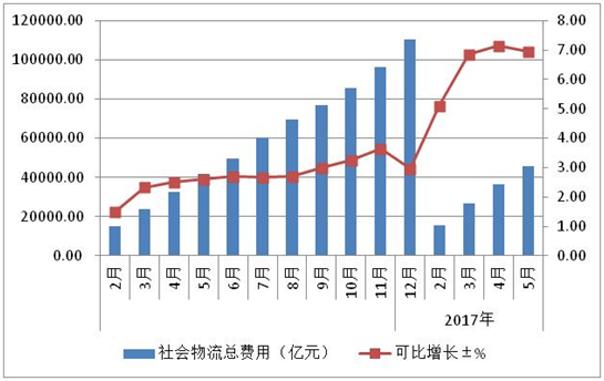 1-5月份,国民经济总体供需关系良好,在此背景下物流运行延续总体平稳,稳中向好的发展态势。物流需求增速略有放缓,仍保持较快增长。社会物流总费用增速有所趋缓,物流运行质量进一步改善。物流业保持平稳较快的发展态势,物流市场规模稳步扩张,物流企业经营状况改善,利润加速回升。