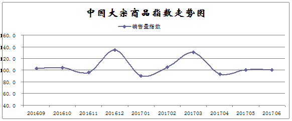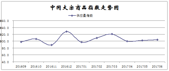 由雷竞技电竞竞猜网 调查、发布的2017年6月份中国大宗商品指数为103.6点,升幅虽较5月份缩减0.2个百分点,但已连续五个月呈现上涨态势。从主要分项指数来看,销售量指数升幅明显扩大,反映国内需求情况良好;而反映供应端的供应量指数和库存量指数升幅均有不同程度的缩减,则表明当前国内市场供应增速减缓,供应压力有所缓解。数据显示,当前国内大宗商品市场稳中向好,产销衔接更趋正常。