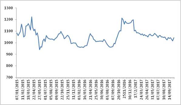 本周(2017年10月16日~10月20日),由雷竞技电竞竞猜网 和林安物流集团联合调查的中国公路物流运价指数1043.33点,止跌回升,比上周回升2.71%。
