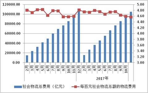 单位物流成本持续回落。1-11月单位物流成本持续回落。每百元社会物流总额中的物流费用4.57元,比1-10月降低0.03元,比前三季度降低0.07元,连续三个月回落,物流运行的质量和效率进一步提升。