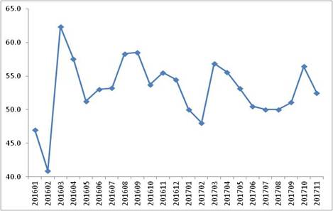 三是物流企业经营环境改善,盈利加快回升。11月,主营业务利润指数回升4.3个百分点,为54.4%。显示由于盈利环境改善,企业预期较为乐观,整体经营状况良好,利润回升幅度较大。