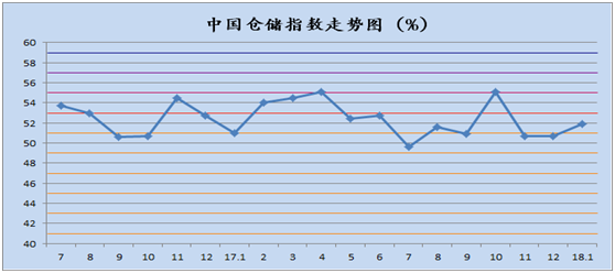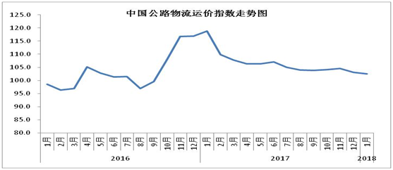 发布的2018年1月份中国物流业景气指数为54.2%较上月回落2.4个百分点;中国仓储指数为51.9%,较上月回升1.2个百分点;中国公路物流运价指数为102.5点,比上月回落0.6%。