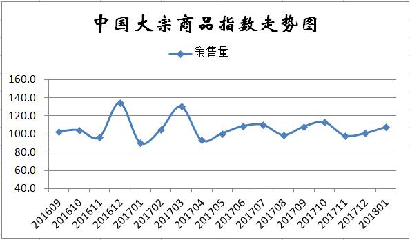 调查、发布的2018年1月份中国大宗商品指数(CBMI)为107.1%,升幅较上月扩大6.5个百分点,该指数连续两个月上升。各分项指数中,供应指数止跌回升,销售指数和库存指数继续上升。数据显示,本月国内大宗商品市场供需两旺,稳中向好的趋势明显。