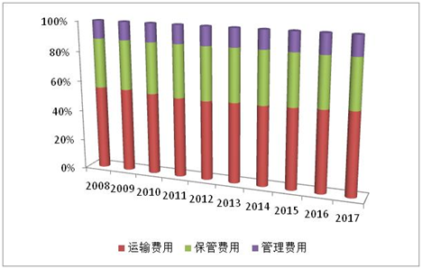 物流领域“降成本”取得实效。随着供给侧结构性改革的深入推进,为进一步推进物流降本增效,国务院连续两年出台推进物流业降本增效的文件,物流领域“降成本”取得成效。2017年社会物流总费用与GDP的比率为14.6%,比上年下降0.3个百分点。即每万元GDP所消耗的社会物流总费用为1460元,比上年下降2.0%,社会物流总费用占GDP的比率进入连续回落阶段。