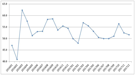 库存周转效率保持较高水平。在去产能的大背景下,社会库存整体保持较低水平,库存周转效率保持高位。2017年中国仓储指数中的平均库存周转次数指数平均为52.1点,全年均处在扩张区间,表明仓储物流企业周转效率持续保持较快增长。