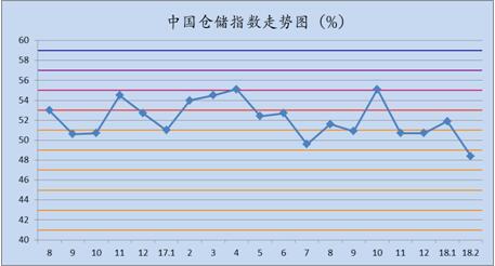 与中储发展股份有限公司联合调查的2018年2月中国仓储指数为48.4%,较上月回落3.5个百分点。各分项指数中,除业务活动预期指数及期末库存指数较上月有所回升外,其余指数均有不同程度的回落。