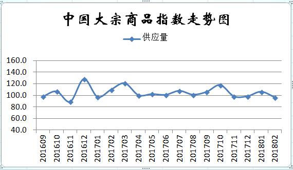 一、商品供应回落明显。2018年2月份,大宗商品供应指数为96.5%,创2016年12月份以来的最低。数据显示,受春节假期影响,生产企业放假导致生产活动普遍下降,加之“2+26”城市限产政策仍在继续执行中,部分钢铁、有色金属、煤炭以及化工等企业停产检修明显增多,商品产量明显减少。各主要商品中,除铁矿石供应有所增加外,其余品种均呈现明显减少的态势,特别是钢铁供应下滑幅度较大。