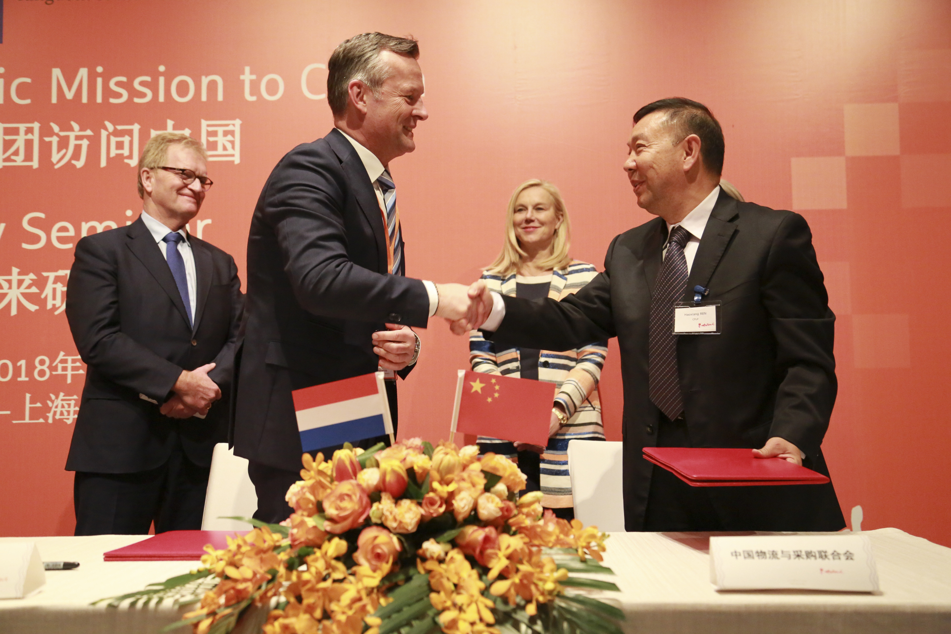 4月9日,中国-荷兰经贸合作签约仪式在上海举行,雷竞技电竞竞猜网 副会长任豪祥出席签约仪式,并代表雷竞技电竞竞猜网 与荷兰物流与运输协会签署战略合作协议。双方合作共同推动两国物流、供应链管理和供应链金融领域研究人员和从业人员的交流与合作,促进农业供应链、制造业供应链协作、供应链金融,绿色供应链和全球供应链领域的人才培养合作。