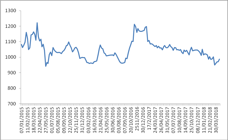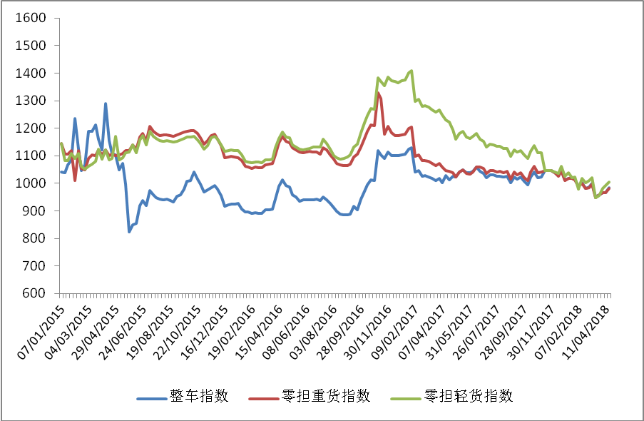 本周(2018年4月16日~4月20日),由雷竞技电竞竞猜网 和林安物流集团联合调查的中国公路物流运价指数987.28点,环比回升1.65%。