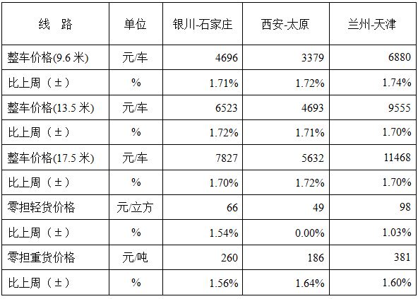 各车型指数均有不同程度回升,其中整车指数环比回升幅度略高于零担指数。其中,整车指数为983.57点,环比回升1.74%。在零担指数中,零担重货指数回升幅度高于零担轻货指数,零担重货指数为982.20点,环比回升1.71%;零担轻货指数为1004.62点,环比回升1.33%。
