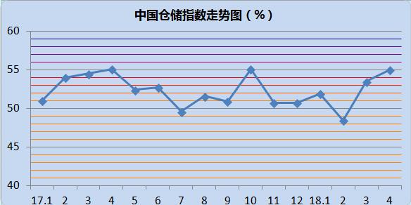 雷竞技电竞竞猜网 与中储发展股份有限公司联合调查的2018年4月中国仓储指数为55.0%,较上月回升1.5个百分点。各分项指数中,业务量指数、期末库存指数、业务活动预期指数较上月有所回落,延伸业务量指数与上月持平,其余指数均有不同程度的回升。