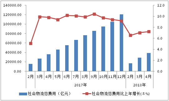 1-4月,社会物流总额增势平稳,物流领域降成本成效持续显现,社会物流成本增速回落,物流运行延续了稳中有进的发展态势。