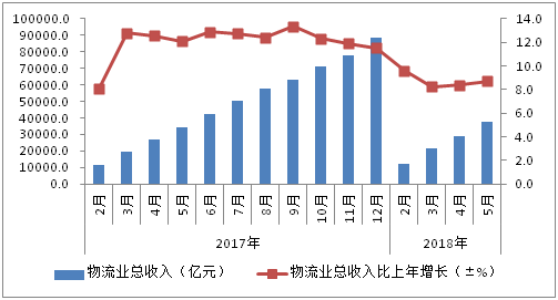 图表 3 2017-2018年物流业总收入及增长
