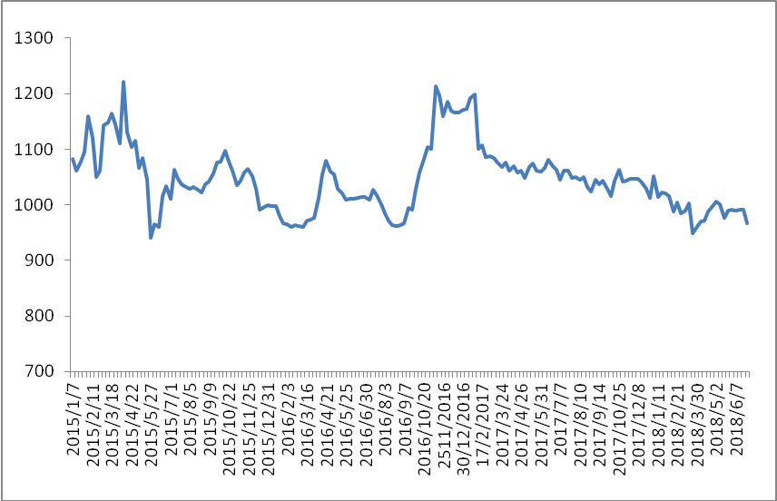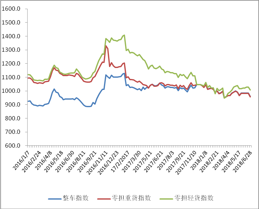 本周(2018年6月25日~6月29日),由雷竞技电竞竞猜网 和林安物流集团联合调查的中国公路物流运价指数967.37点,环比回落2.42 %。